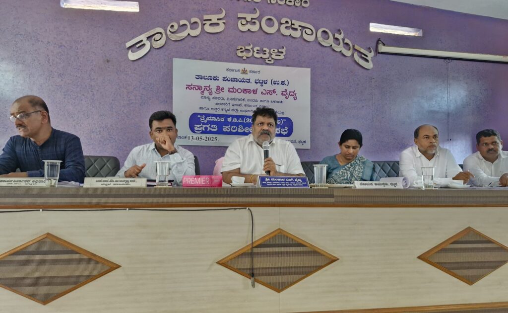 ಭಟ್ಕಳ : ಜಿಲ್ಲಾ ಉಸ್ತುವಾರಿ ಸಚಿವ ಮಂಕಾಳ ಎಸ್. ವೈದ್ಯ ಅವರ ಅಧ್ಯಕ್ಷತೆಯಲ್ಲಿ ತಾಲೂಕು ಪಂಚಾಯತ ಸಭಾಗ್ರಹದಲ್ಲಿ ತ್ರೈಮಾಸಿಕ ಕೆ.ಡಿ.ಪಿ. ಸಭೆ (20ಅಂಶಗಳ) ಪ್ರಗತಿ ಪರಿಶೀಲನಾ ಸಭೆಯು ನಡೆಯಿತು. ಸಭೆಯಲ್ಲಿ ಇಲಾಖಾವಾರು ಪ್ರಗತಿ ಪರಿಶೀಲಿಸಿದ ಸಚಿವ ಮಂಕಾಳ ವೈದ್ಯ ಅವರು ಕಚೇರಿಗೆ ಬರುವ ಜನಸಾಮಾನ್ಯರನ್ನು ಎಲ್ಲಾ ಅಧಿಕಾರಿಗಳು ಗೌರವದಿಂದ ನಡೆಸಿಕೊಂಡು ಅವರ ಕೆಲಸ ಮಾಡಿಕೊಡಬೇಕು. ಪದೇ ಪದೇ ಅಧಿಕಾರಿಗಳು ಬುದ್ದಿ ಹೇಳಿಸಿಕೊಳ್ಳಲು ಕೆಲಸ ಮಾಡಿಕೊಳ್ಳಬಾರದು ಎಂದು ಖಡಕ್ ಸೂಚನೆ ನೀಡಿದರು.